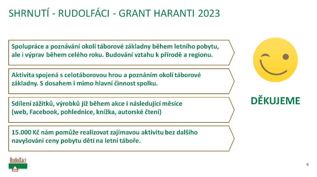 V rámci tábora Rudolfáci plánujeme projekt Kořenské pohádky. Na tento projekt žádáme podporu v rámci grantového programu Haranti 2023. Prezentace našeho projektu proběhla dne 14.04.2023 v Záchlumí. „Pohádkový“ projekt odprezentovali Richard Přibyl (Vokoun) společně s Valentýnou Coufalovou (Valča).