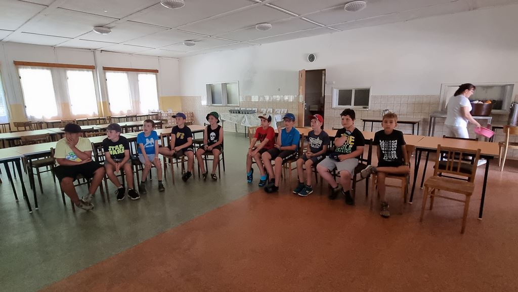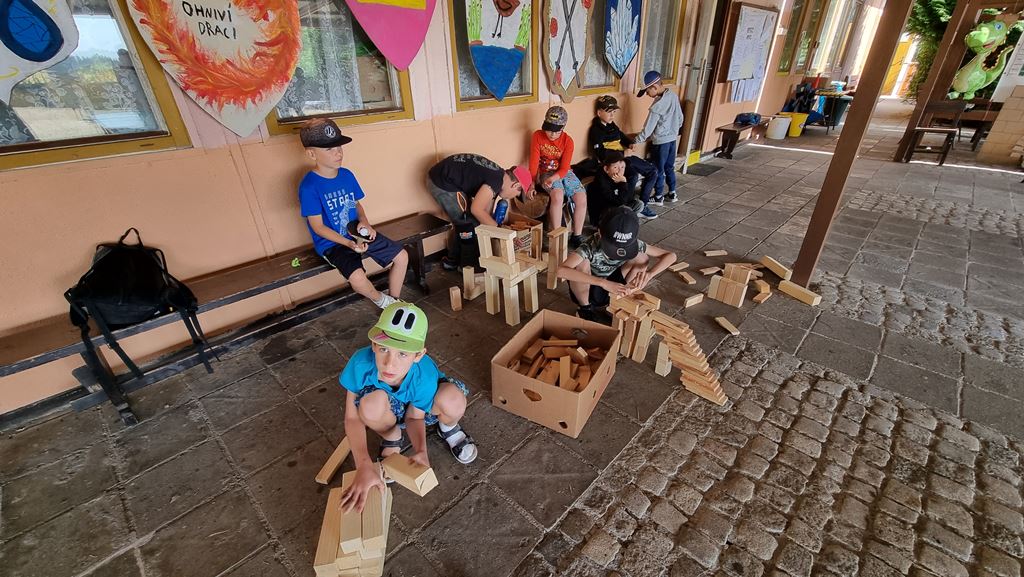 V rámci dopolední aktivity si děti vyzkoušely opět X-Box, sportovní párty. Při párty proběhly celkem 2 kola 6 soutěží jako je hod oštěpem, box, skok do dálky, hod diskem, překážkový běh nebo sprint. Týmy červený a modrý, vždy 5-6 dětí spolu celých 30 minut soutěžily.