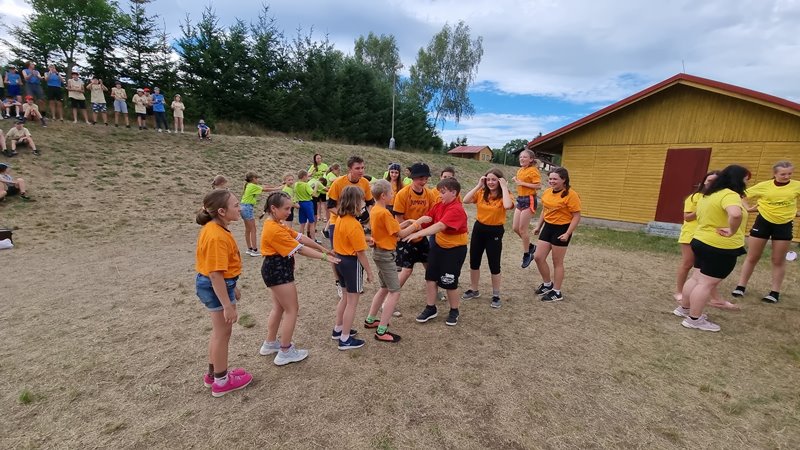 Celotáborová hry „Trička“ dnes slavila úspěch snad u všech. To si vlastně celé družstvo postupně co nejrychleji převlékne tričko. Každý lichý nalíc a ten druhý naruby! Nejrychlejší čas byl kolem 45s pro družstvo o 11 členech. To byla rychlost. Video ze hry můžete vidět na naše Facebooku!